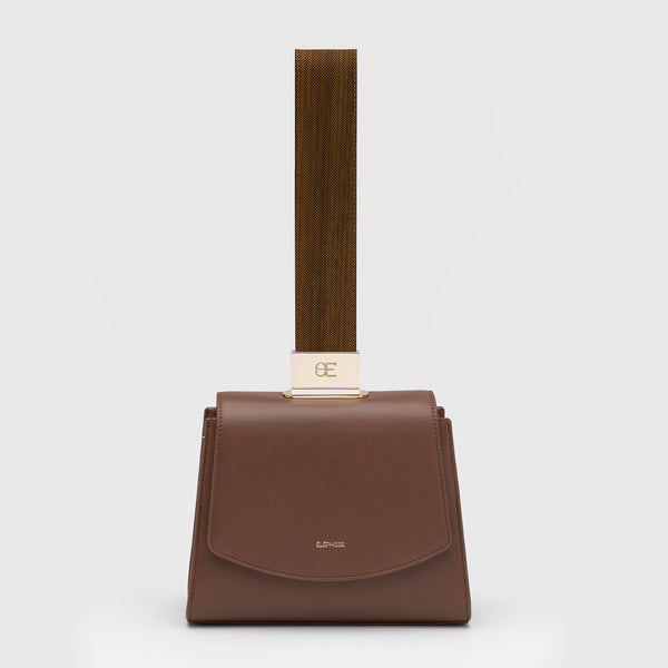 Der satte und erdige Henkel aus dunklem Holz bietet eine mühelose Tiefe, die perfekt ist, um kühne oder subtile Looks zu unterstreichen.